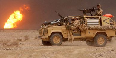 The SAS pioneered the use of the Land Rovers as a mobile weapons platform. The SAS had used Jeeps to shoot up German aircraft parked on remote desert airstrips during WWII. Post War, they eventually graduated to the new Land Rover Series’ and Defender models. The SAS perfected the art of adapting the utility vehicles into long-range patrol and attack vehicles. The concept was proved in 1991 when during the first Gulf War, the SAS, one of the most hardened and elite military units on earth were asked to go behind enemy lines into the desert to the be the eyes and ears of the Allied forces in Operation Desert Storm. To help them they used military Land Rover 110’s. In the mid-eighties the 110 became the SAS's new Desert Patrol Vehicle (DPV). The DPV had coiled-spring suspension, providing for a much more comfortable ride than its predecessors. Whilst still affectionately called 'Pinkies' by the SAS, they sported a more traditional beige camouflage scheme.